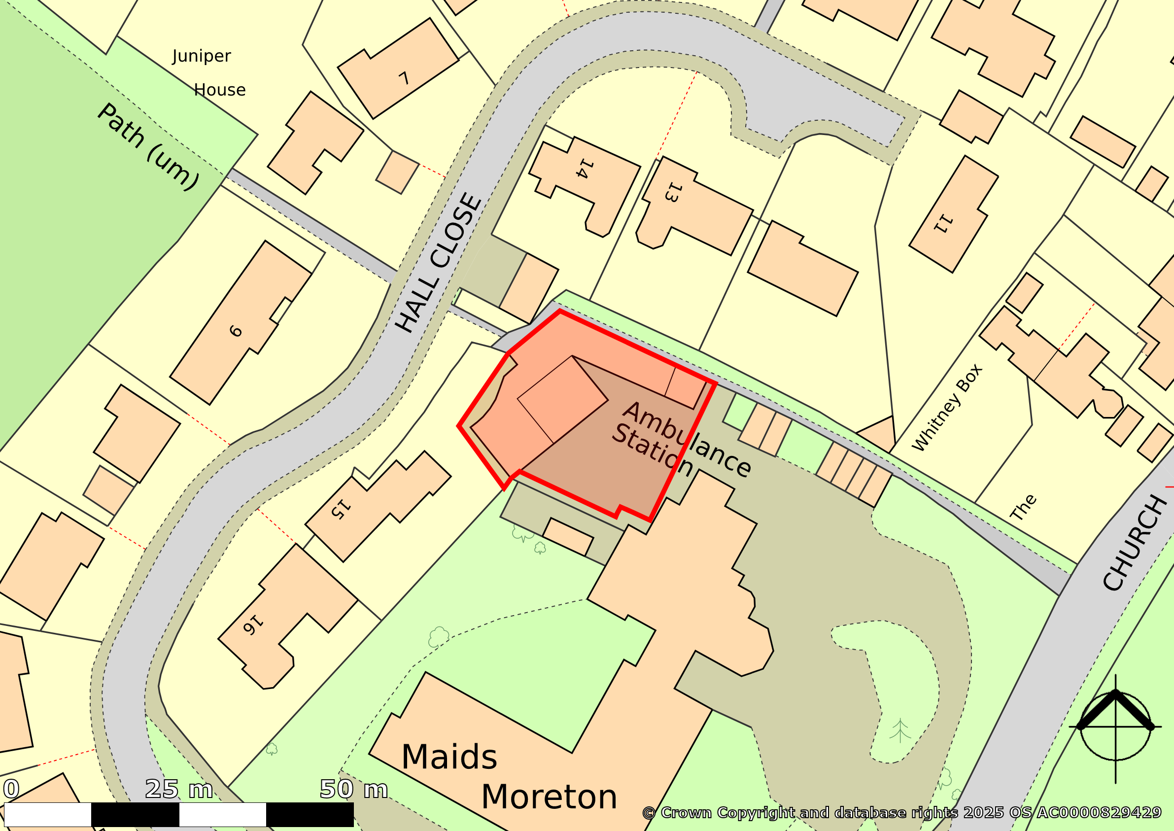 The property comprises a former ambulance depot situated on a site of approximately 0.164 acres, accessed via Church Street with an unimpeded right of way over land owned by Maids Moreton Care Home.